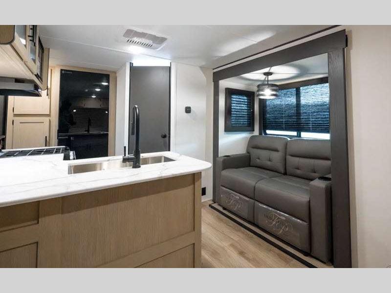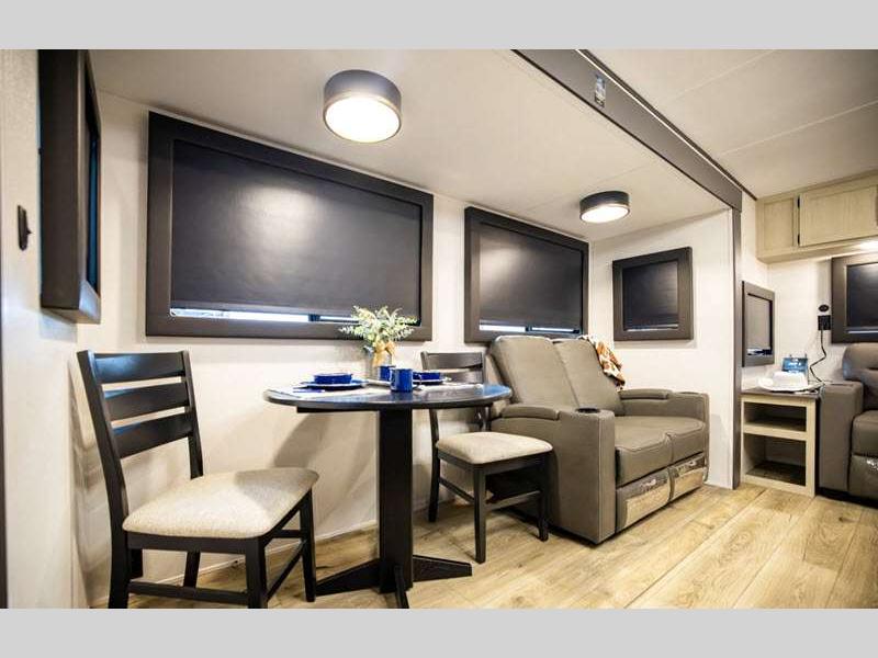 Each is constructed of an aluminum exterior skin, 2x2 wood studs 16" on center or less, fiberglass insulation in all walls, floor and roof, plus Tufflex PVC roof material. The Camping with Ease Package comes a tankless water heater, a 200W solar panel, a Bluetooth portable speaker to listen to your favorite tunes. The Step-Up Package is also accommodating with its power tongue jack, flip-up storage rack, enclosed underbelly, and more!