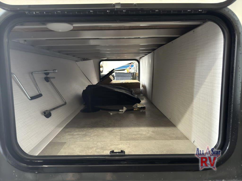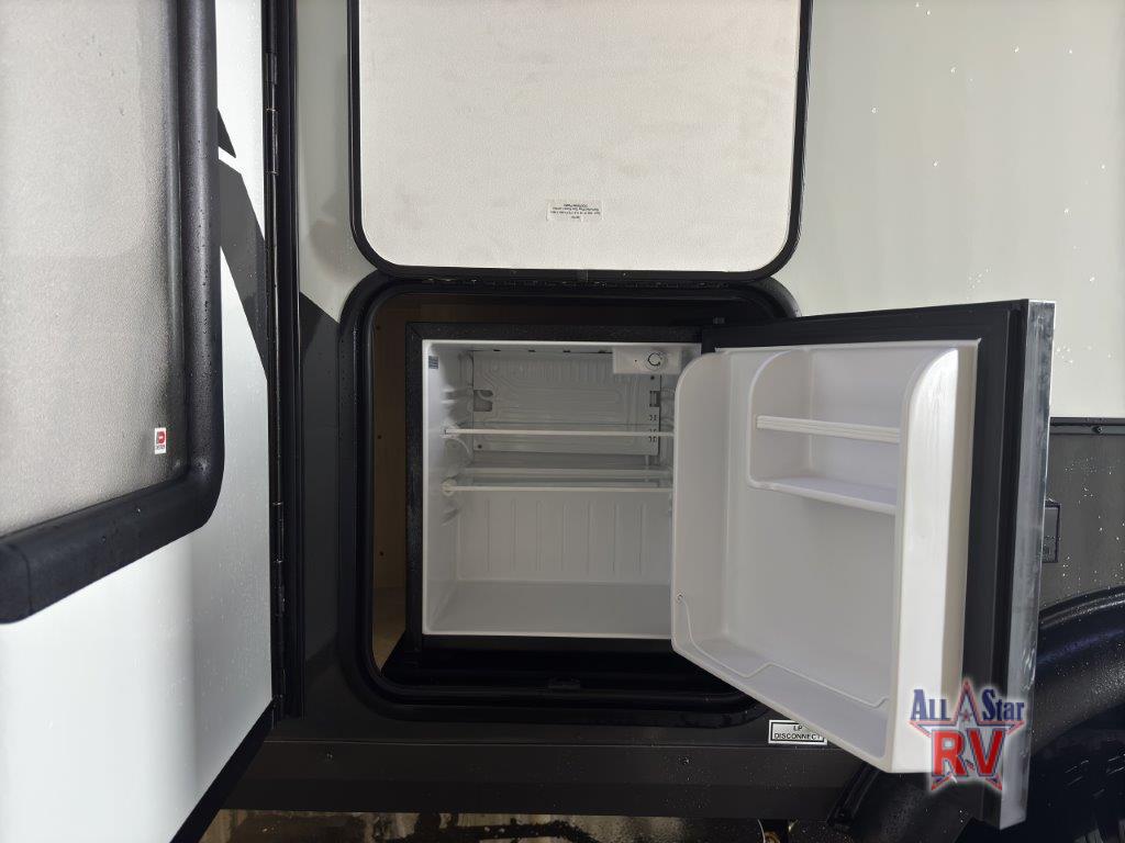 This spacious bunk trailer will work perfectly for a family or friend group that enjoys their own sleeping space, plus more floor space with the dinette slide out that can sleep one to two. The bottom bunk even flips up so you can stow away your bikes, totes and such through the bike door for secure travels. There is exterior storage for more outdoor gear, and interior storage found throughout. The cook will love having a pantry and overhead cabinets for snacks, canned goods, dishes and more. After making a warm meal, the 12V refrigerator can hold the leftovers. There is also a flip-down lavy sink in the full bath for added space when not in use!