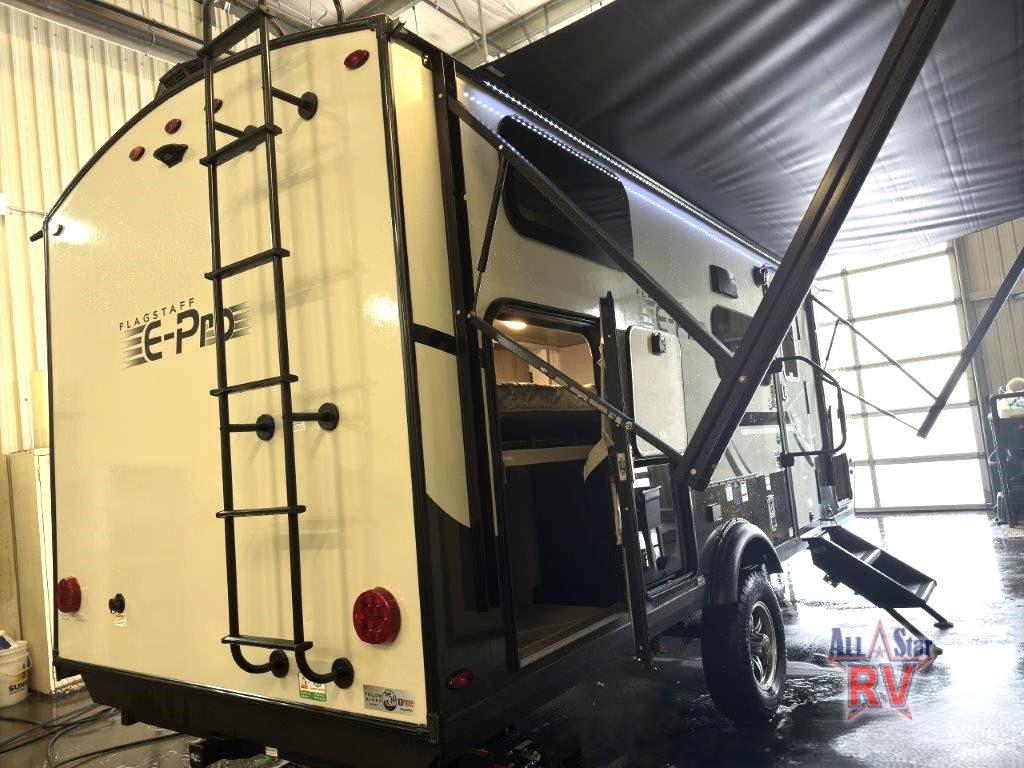 With any Flagstaff E-Pro travel trailer by Forest River, you will experience lightweight towing, style and features that will meet your needs, plus amenities that give you more than you expected! Built with interior and exterior composite sidewall construction, tongue and grove plywood flooring, and a vacuum laminated roof and walls, plus torsion axle, Rubber-Ryde suspension, and a tire pressure monitoring system for safety while traveling. And the 200 watt roof mount solar panel with 1,800-watt inverter will allow you to stay off-grid if you like. The interior offers a comfortable environment with the choice to use the air conditioner or furnace, and a 12V entertainment TV with a stereo to stay up to date on your favorite movies. Make your selection today!