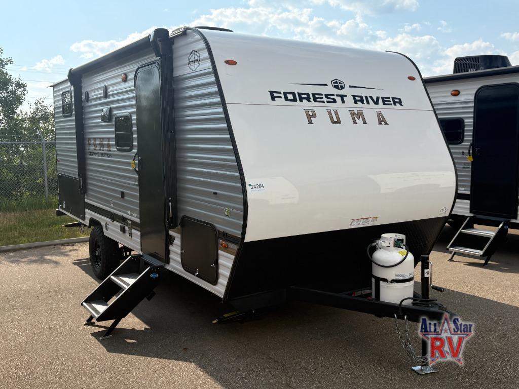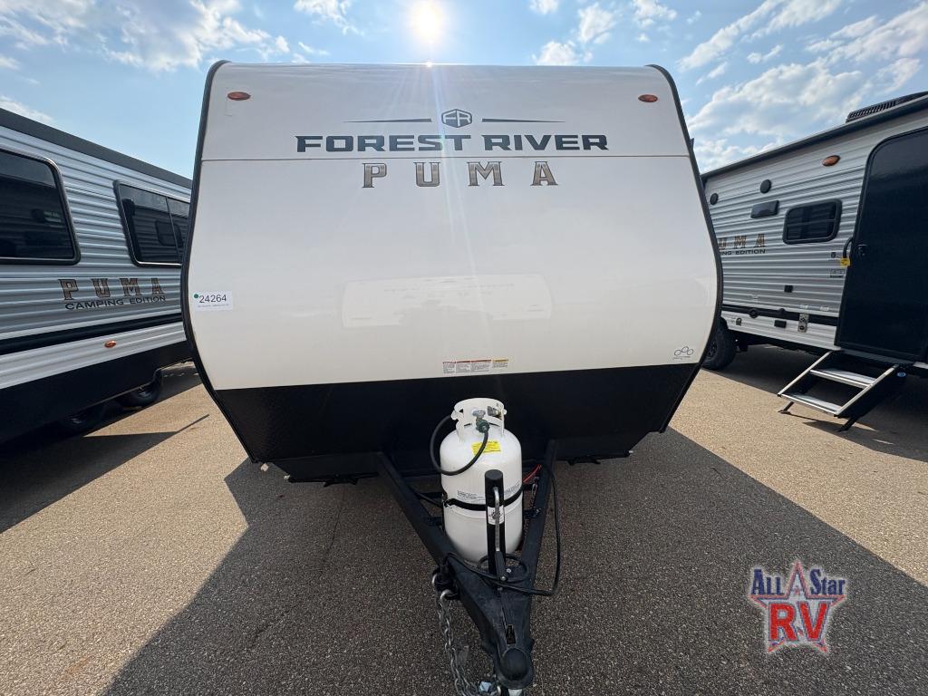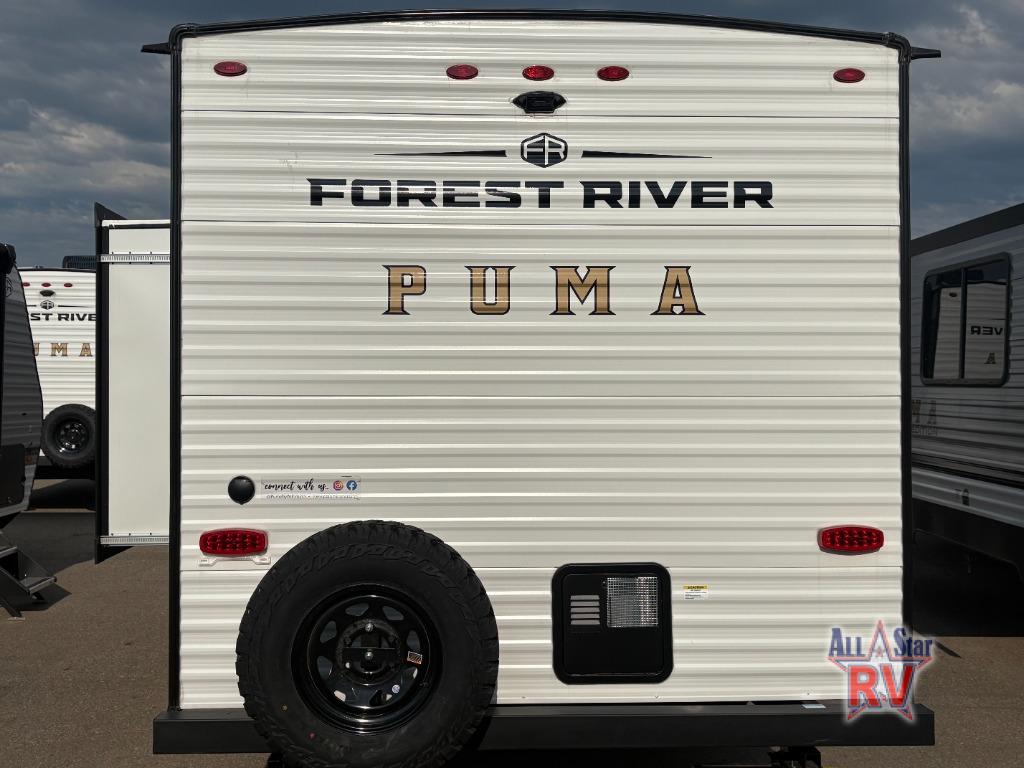 The Puma Camping Edition by Palomino offer an affordable travel trailer for rookie campers or seasoned RVers! They are built with 5/8" tongue and groove plywood flooring and a front diamond plate for added protection. There are also exterior clamp style door latches, back up camera prep, and 20 lb. LP bottles. Head inside to find Thermofoil countertops with a smooth drop edge, bedroom USB ports and outlets, and a GE appliance and kitchen package.