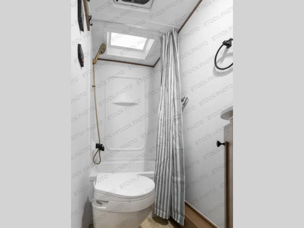 As you step into this versatile travel trailer, you'll be greeted by a front Murphy bed that offers the best of both worlds, a comfortable place to sleep at night and a cozy sofa for daytime lounging. Convenient storage is provided with a wardrobe at the foot of the bed and a nightstand on the other side for your essentials. In the center, the kitchen is fully equipped with a 10-cu. ft. refrigerator, a 2-burner cooktop, and an air fryer microwave, giving you all the tools you need to prepare your favorite meals. Across from the kitchen, a counter with chairs offers a welcoming space to dine, work, or gather. Toward the rear, double bed bunks provide additional sleeping space, with the lower bunk flipping up to reveal extra storage for your gear. Rounding out the layout is a full bathroom in the rear corner, featuring a tub/shower combo so you can enjoy the comfort and convenience of bathing right inside your trailer.
