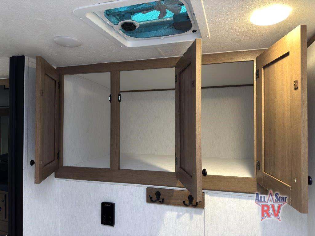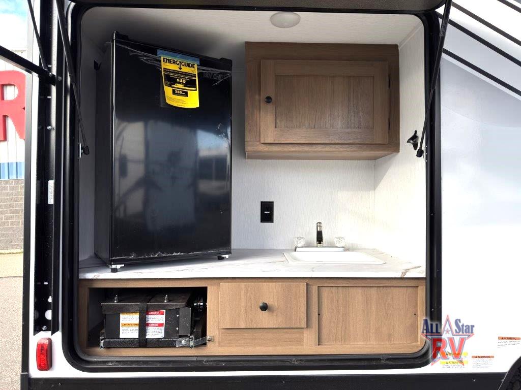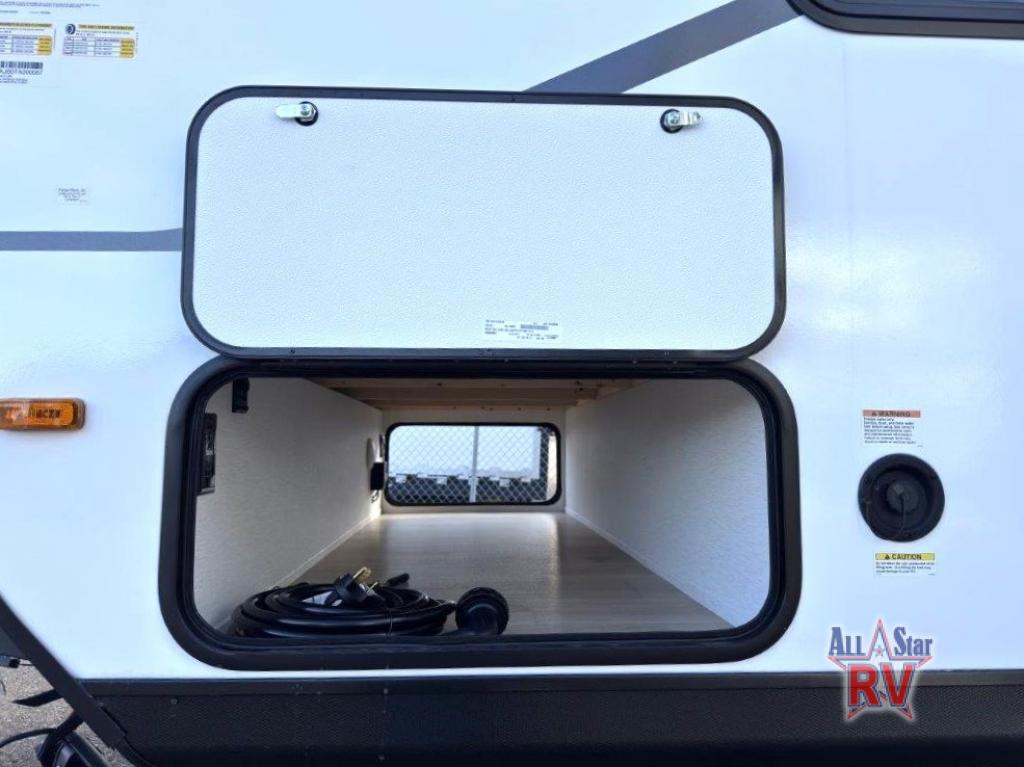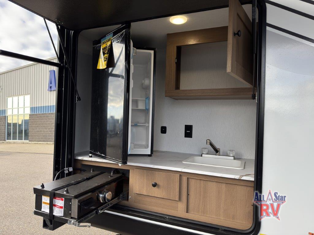 When you camp at RV parks, state parks or local campgrounds, you will love the easy setup after towing the trailer to your destination! The booth dinette slide and the power awning can quickly be set up so you can relax and unwind with your favorite person or people. You will have the choice of cooking inside with full amenities or outdoors on the outside kitchen, and inside you will have a pantry to store all your dry goods and a microwave to heat up items. The rear bathroom includes a wardrobe and allows you privacy when inside, and the front walk-around queen-size bed or the Murphy bed option, allows you to sleep comfortably after hiking, walking or fishing. And you will find more storage throughout for your clothing, plates, games and such, plus outside in the pass-through compartment.