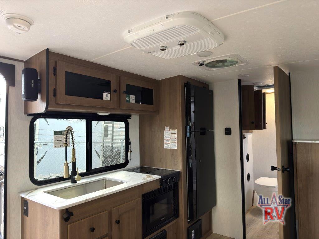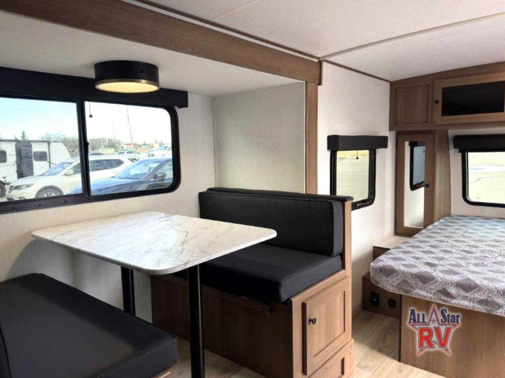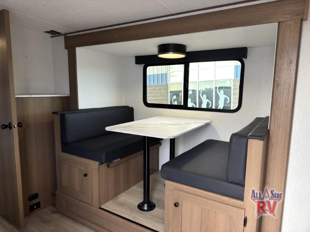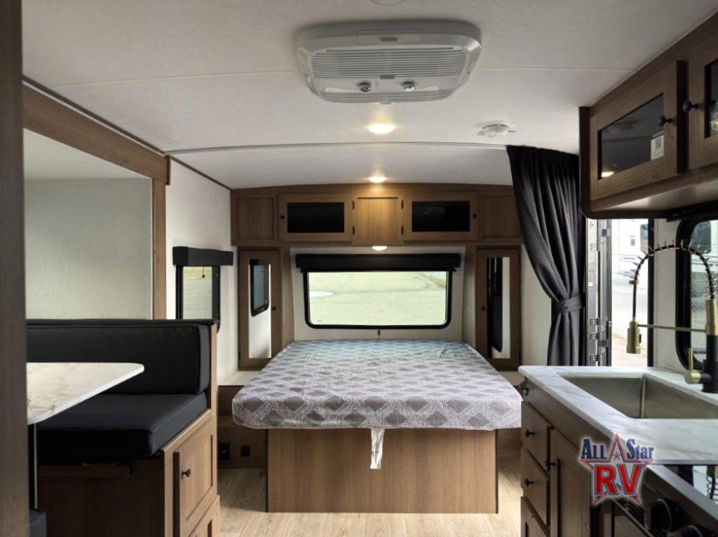 When you camp at RV parks, state parks or local campgrounds, you will love the easy setup after towing the trailer to your destination! The booth dinette slide and the power awning can quickly be set up so you can relax and unwind with your favorite person or people. You will have the choice of cooking inside with full amenities or outdoors on the outside kitchen, and inside you will have a pantry to store all your dry goods and a microwave to heat up items. The rear bathroom includes a wardrobe and allows you privacy when inside, and the front walk-around queen-size bed or the Murphy bed option, allows you to sleep comfortably after hiking, walking or fishing. And you will find more storage throughout for your clothing, plates, games and such, plus outside in the pass-through compartment.