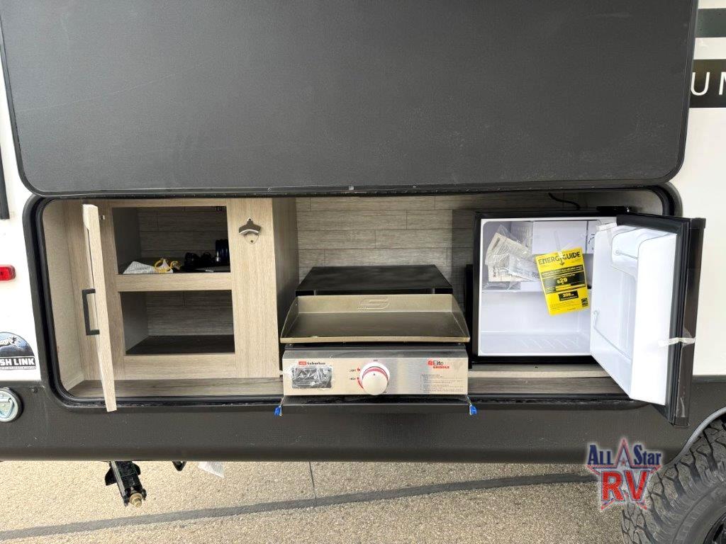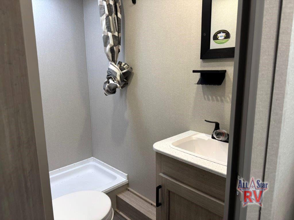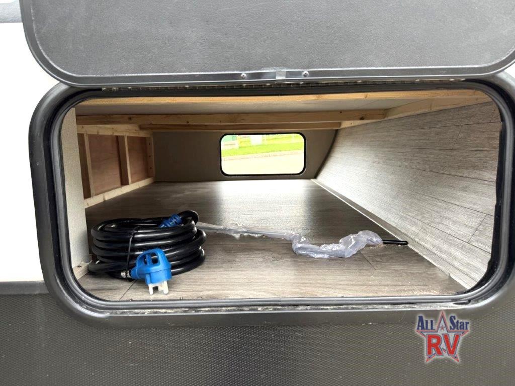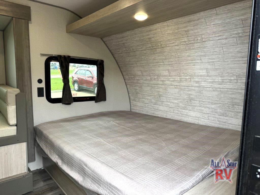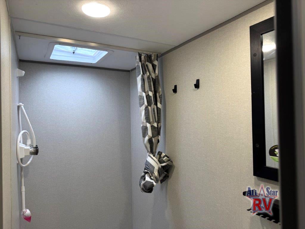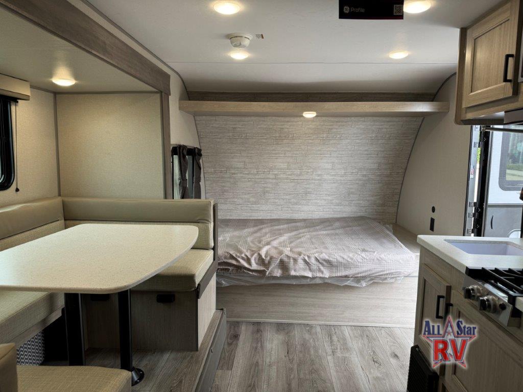 This spacious travel trailer can sleep eight campers each night thanks to the double-size bunks in the back, the U-shaped dinette within the slide out, and the queen bed up front! You can easily make meals for your crew with the two burner cooktop and microwave oven, and leftovers can go in the 10.7 cu. ft. 12V refrigerator! After you've cleaned up in the full bath, head outdoors to relax under the 15' power awning with multicolor LED lights and a remote!
