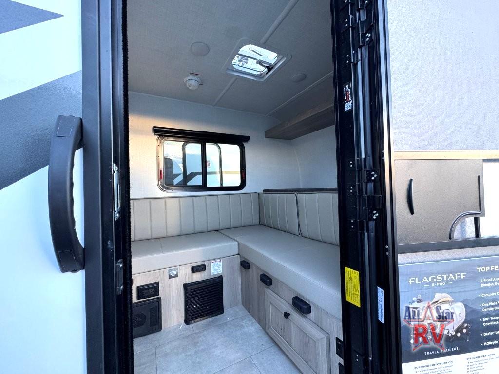 With any Flagstaff E-Pro travel trailer by Forest River, you will experience lightweight towing, style and features that will meet your needs, plus amenities that give you more than you expected! Built with interior and exterior composite sidewall construction for added strength and durability, a fully laminated roof for weather-tight protection, and aluminum truss roof bracing for enhanced stability. These trailers are equipped with Dexter leaf-spring axles for smooth towing and durable performance. The interior features an aluminum dinette, bed, and bunk, providing a strong and lightweight framework for comfortable living. Additionally, the backup camera prep ensures a safe and stress-free reversing experience. Make your selection today!