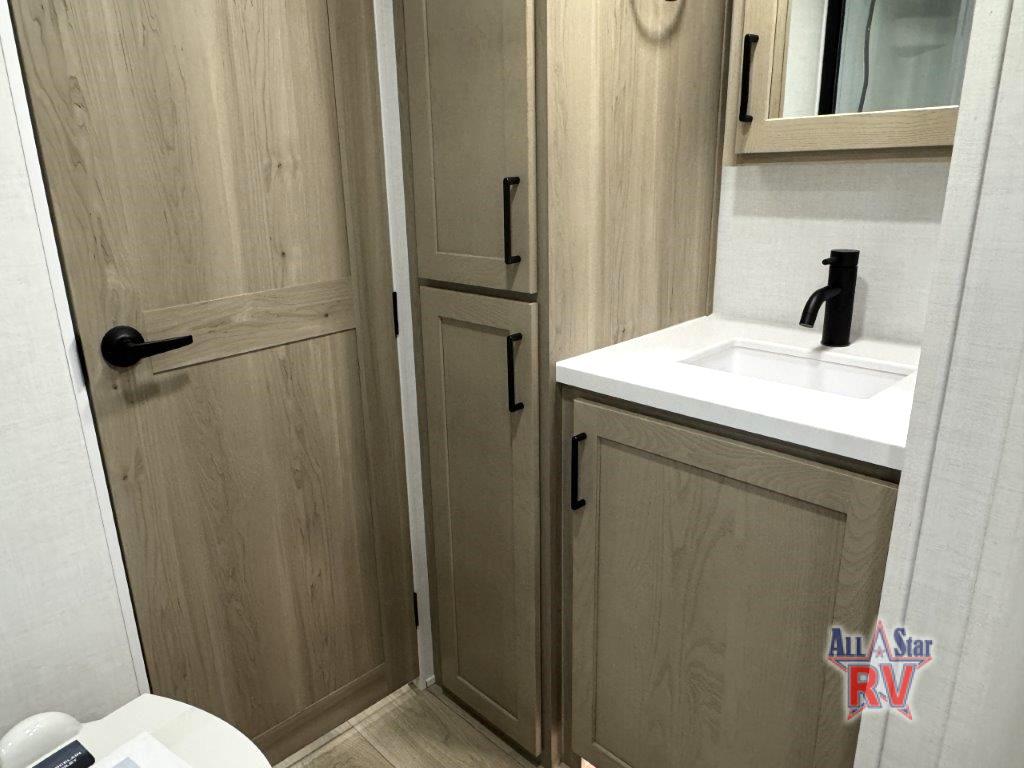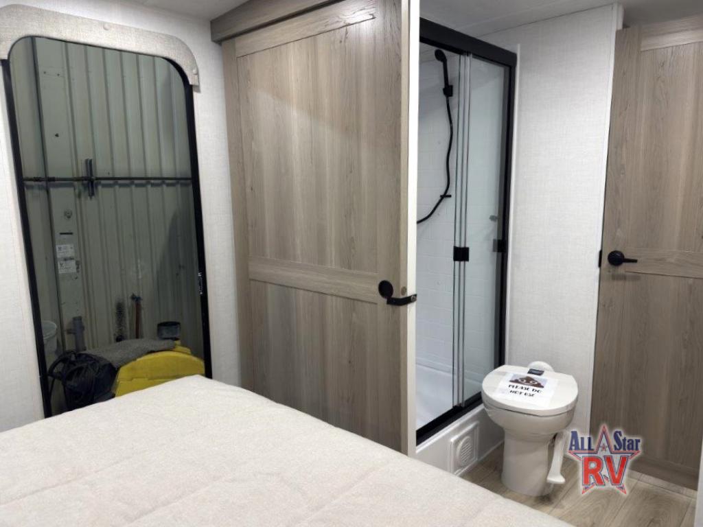It will be so easy to enjoy time at the campground in this cozy travel trailer. The full kitchen includes a three burner gas oven, a microwave oven, and a 12V refrigerator to cook and store food, and the pantry will let you stock up on snacks. Your crew can get comfortable on the theater seat or around the rear U-shaped dinette, and there is a smart TV here to make it a movie night. The walk-thru bath will let you freshen up each day, and the queen bed in the front bedroom is sure to bring comfort. You will also find one of the dual entry doors here for convenience plus a wardrobe slide out for more storage and floor space. The exterior is just as accommodating with its pass-thru storage, 2" receiver hitch, and 21' power awning!