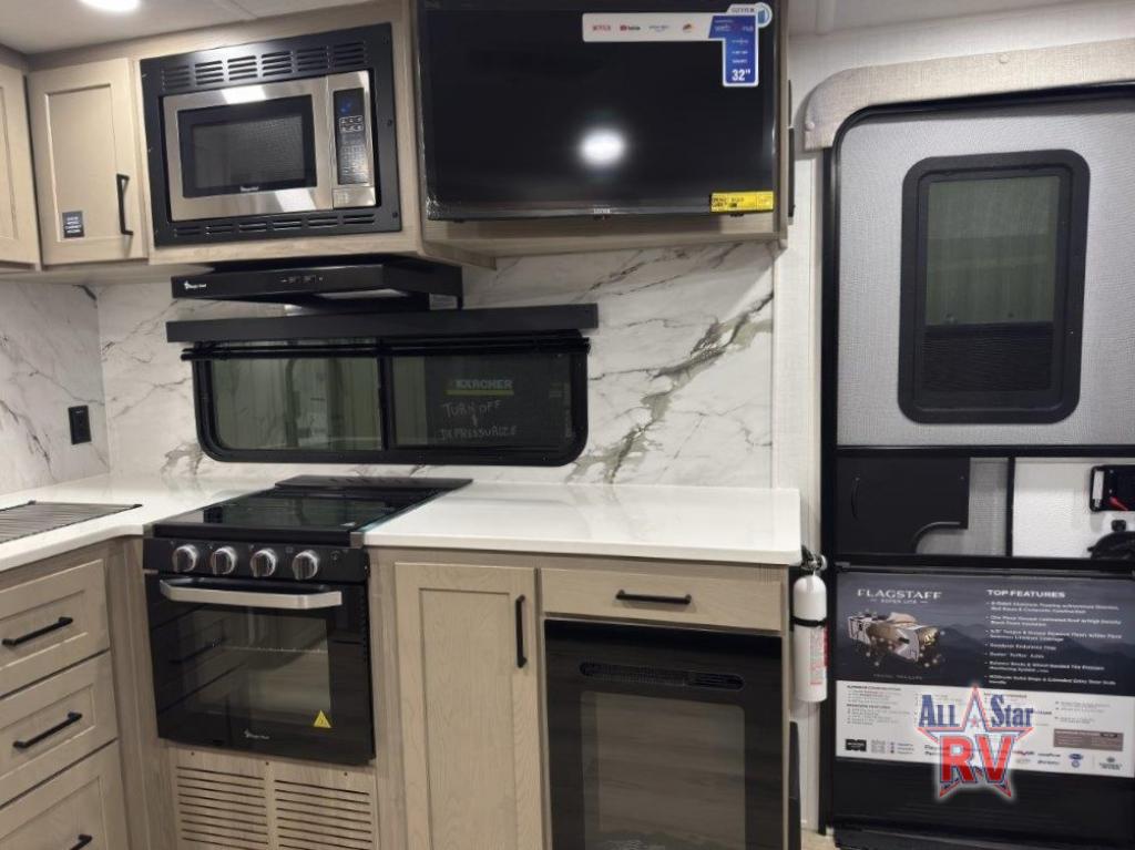 With any Flagstaff Super Lite travel trailer by Forest River, you can enjoy quality features with lightweight towing! The Climate Protection Package includes radiant foil in the front cap, underbelly, and slides, plus there are 12V thermostat-controlled heated tanks for added protection. The complete composite wall construction and 6-sided full-aluminum frame is ultra durable, and the RoadTech tire pressure monitoring adds safety. Each model also includes the Coast to Coast Package that comes with slam latch baggage doors, a high gloss fiberglass cap, Goodyear Endurance tires, plus a 200W solar panel with an optional additional 200W panel for more off grid capabilities. Inside, you'll love the roller shades, solid surface kitchen countertops, a shower miser system, and many more comforts!