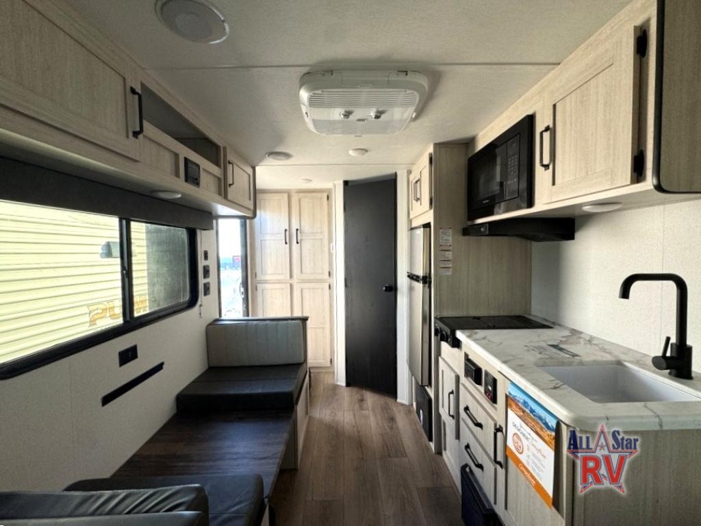 The Puma Camping Edition by Forest River offer an affordable travel trailer for rookie campers or seasoned RVers! They are built with 5/8" tongue and groove plywood flooring and a front diamond plate for added protection. There are also exterior magnetic baggage door latches, back up camera prep, a battery disconnect. Head inside to find Thermofoil countertops with a smooth drop edge, bedroom USB ports and outlets, and pleated shades in the living room.