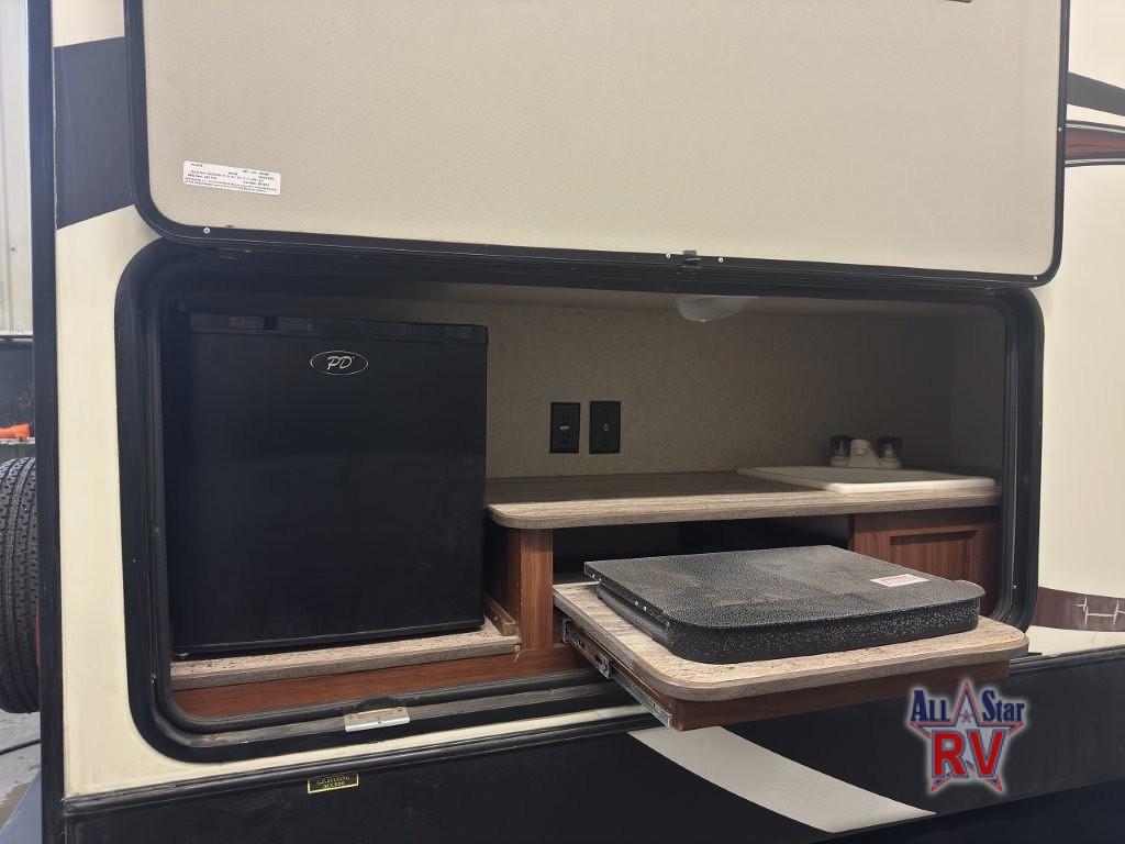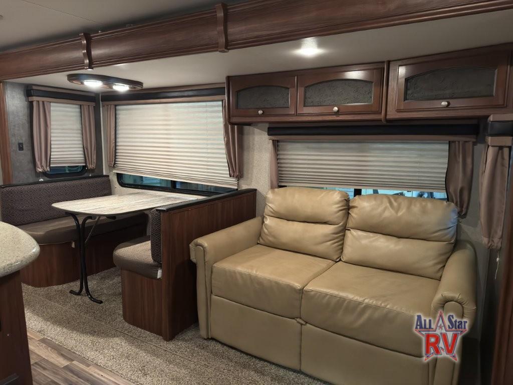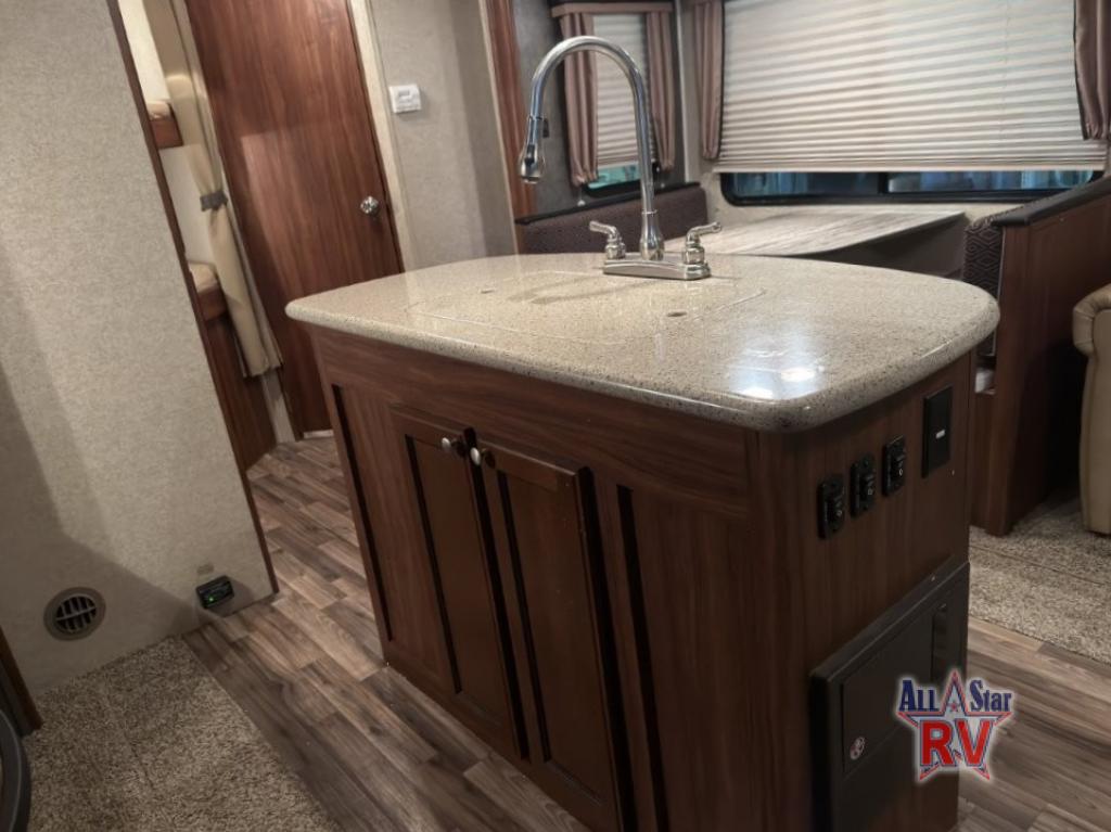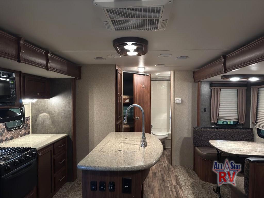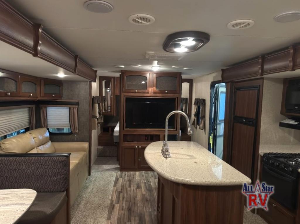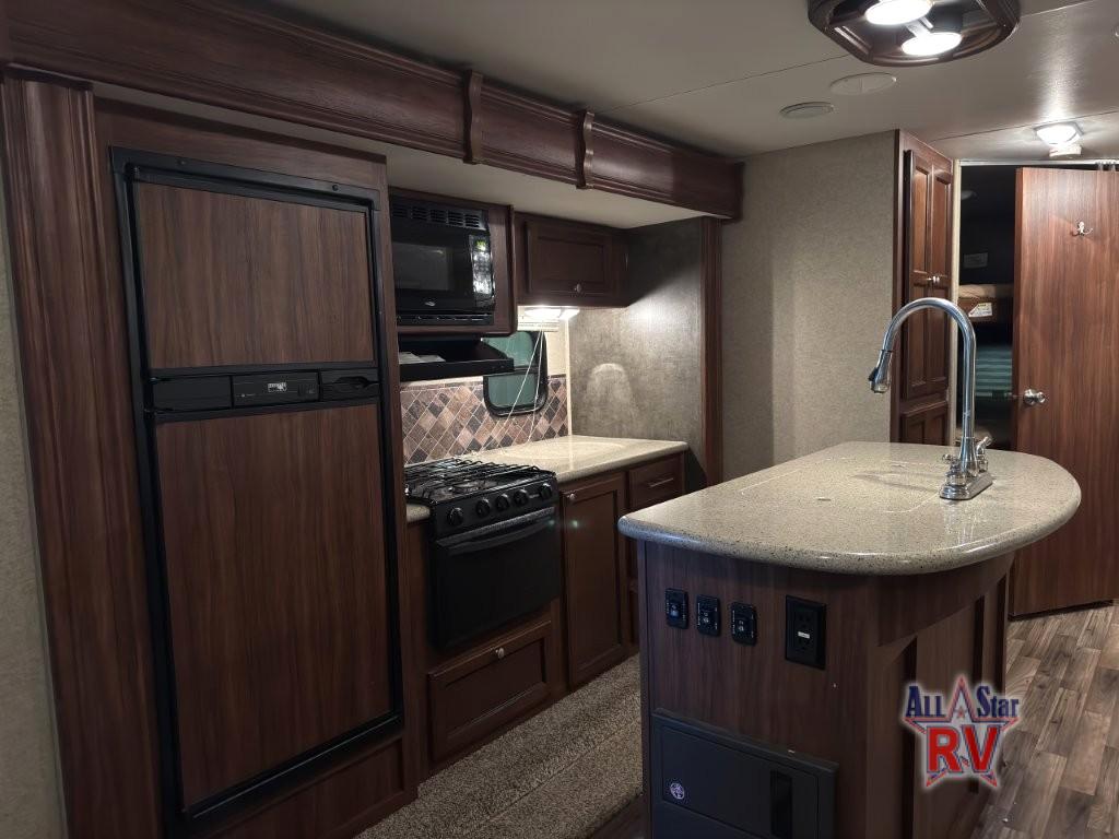 Step inside 27BHDS and see just how easy camping with your family will be. The open concept kitchen and living space features dual slides opposite one another for maximum space. There is a center kitchen island with double sink for convenient food prep and cleanup. There is also a swivel TV box entertainment center for living room and bedroom viewing for your enjoyment.