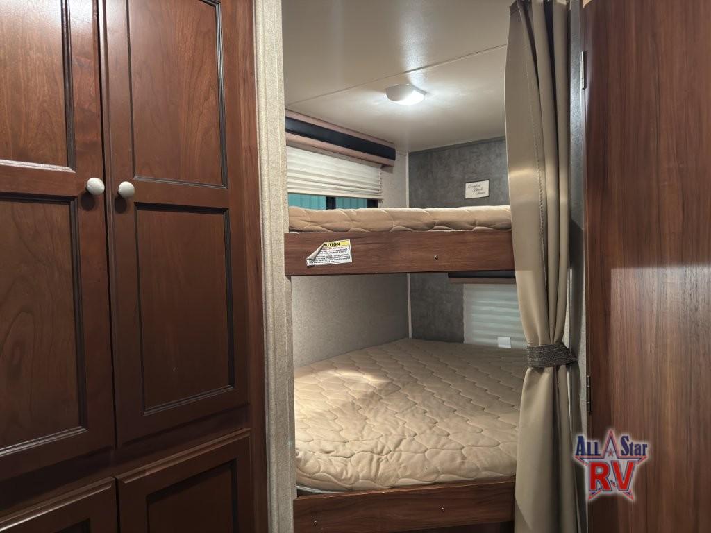 The opposite rear corner features double bed bunks and storage at the foot of the bed.