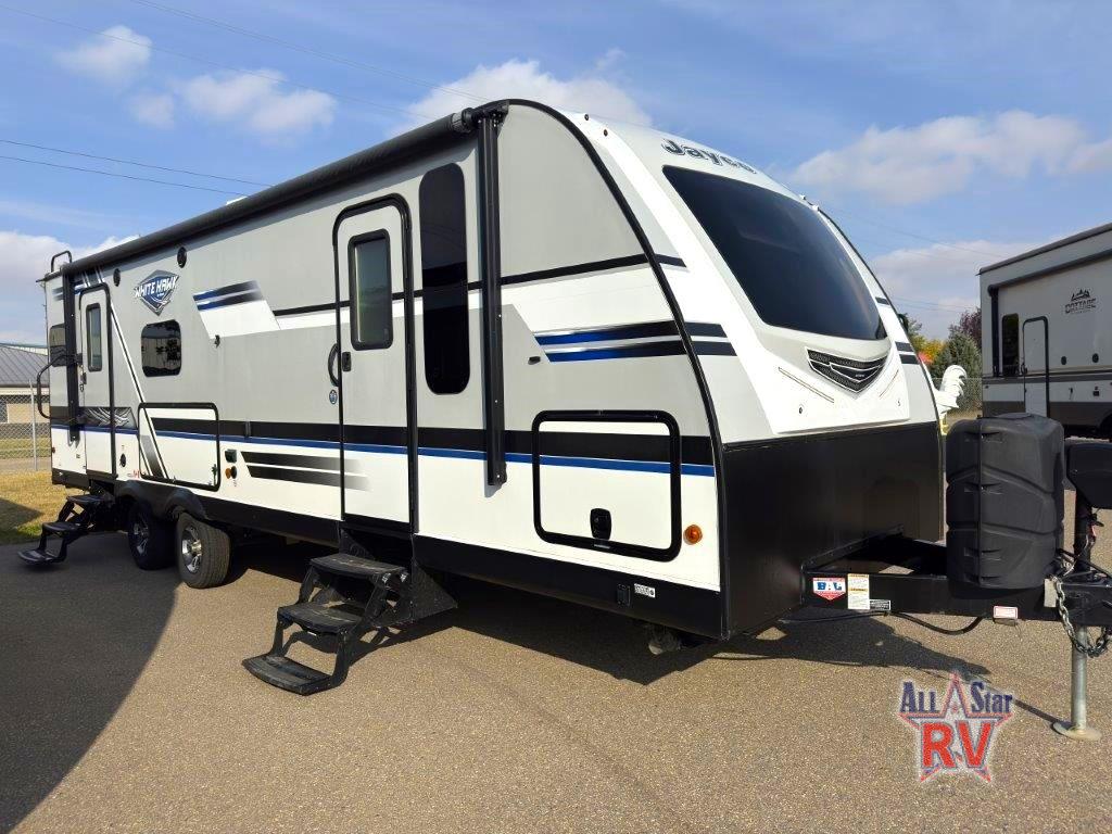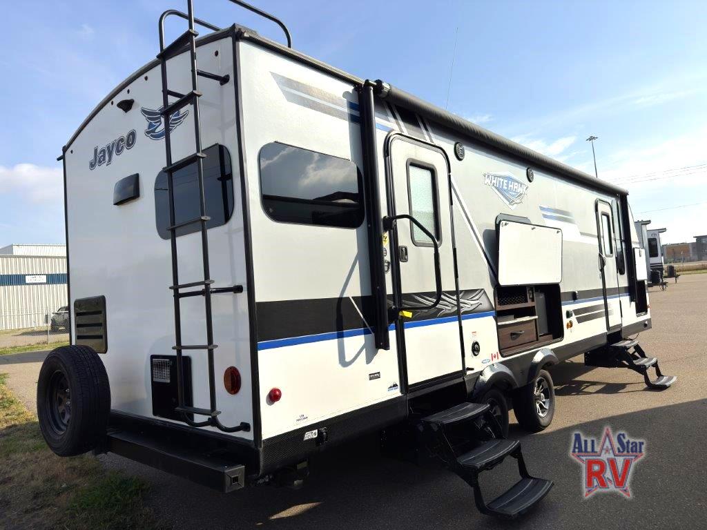 Jayco has made certain that you will stand out from the crowd while traveling in the White Hawk by adding their Magnum Truss Roof System which can withstand up to 4,500 pounds, fifty percent more than the competition. The American-made Goodyear tires with self-adjusting electric brakes are the perfect base to the sleek and aerodynamic exterior. On top of all of that, the entire trailer is backed by the Jayco 2-year limited warranty so that you can travel with confidence during every adventure you take.
