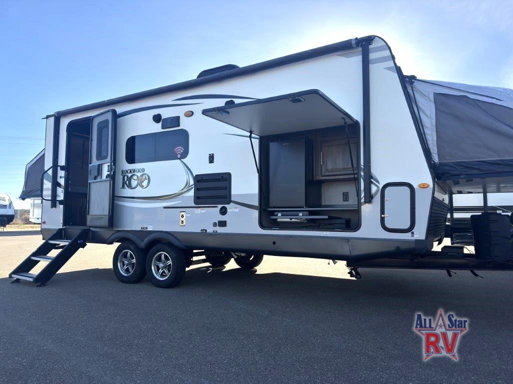 For an expandable with the perfect balance of comfort and convenience, choose the Forest River Rockwood Roo campers. Each model includes solid surface kitchen countertops, a multi zone stereo with DVD/CD/AM/FM and Bluetooth control, a double door auto gas/electric refrigerator, plus a bathroom skylight just to name a few at-home comforts. You can enjoy your time outdoors with a power awning with LED lights and the outside speakers will make your campsite the life of the party. These models are constructed with a fully aluminum frame and a radiant foil insulated underbelly, allowing you to extend your camping season with ease.