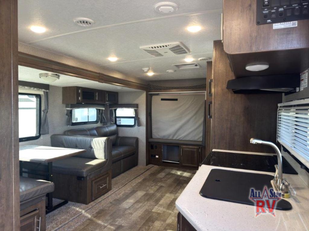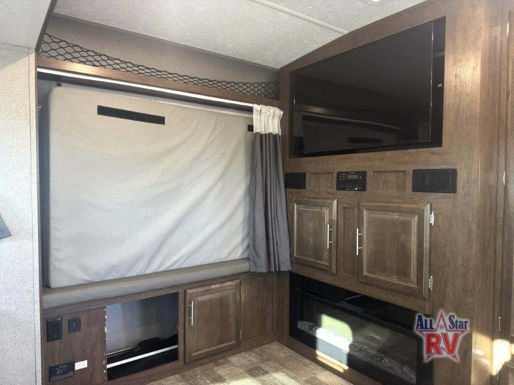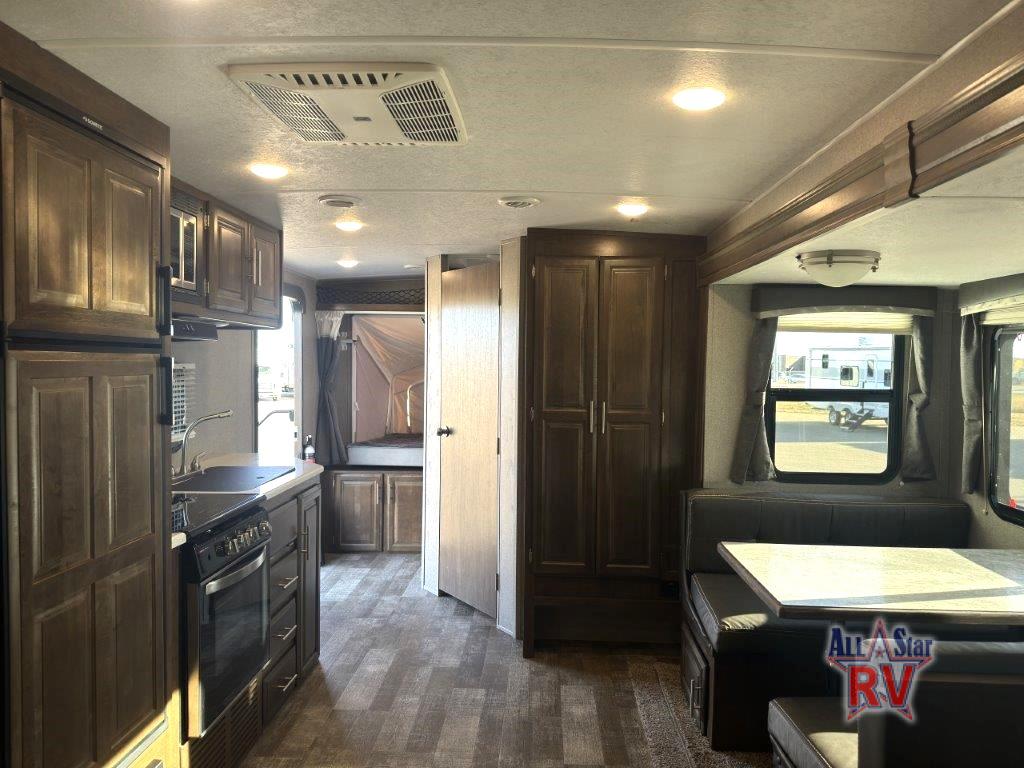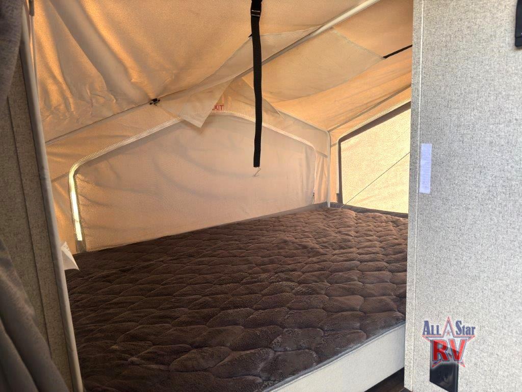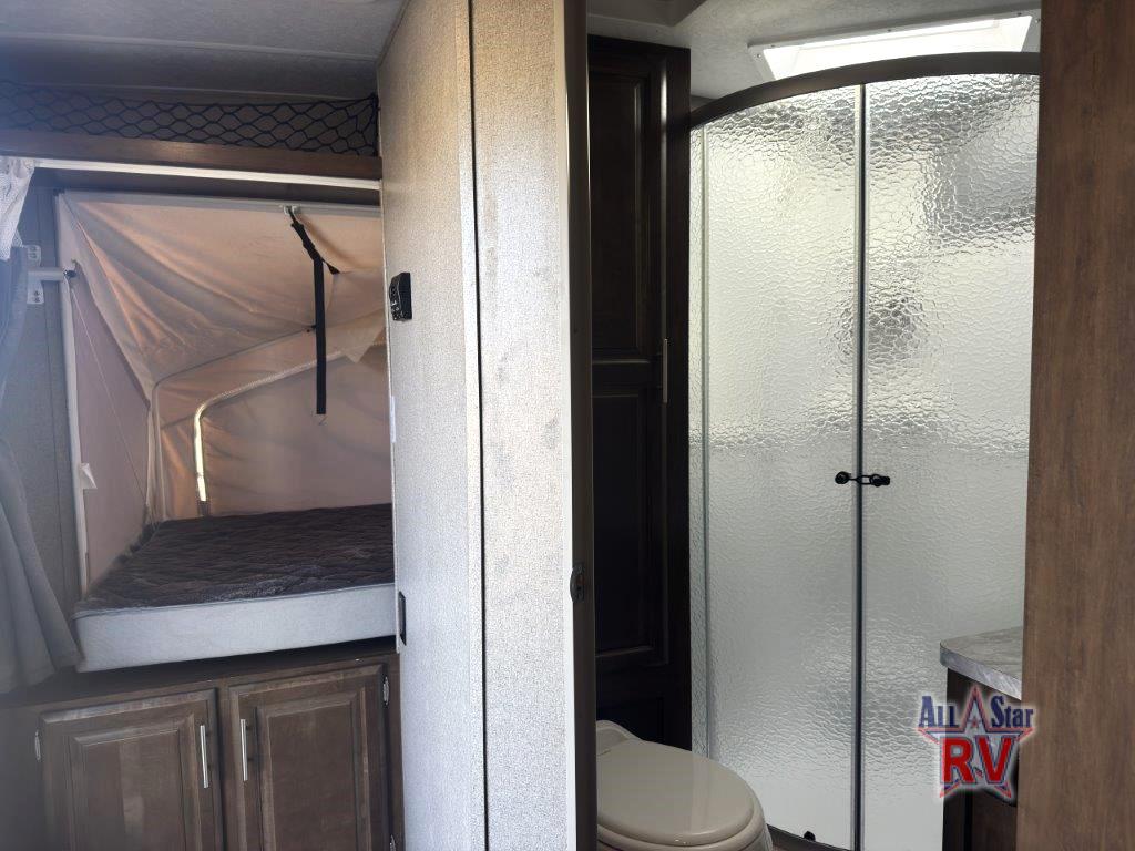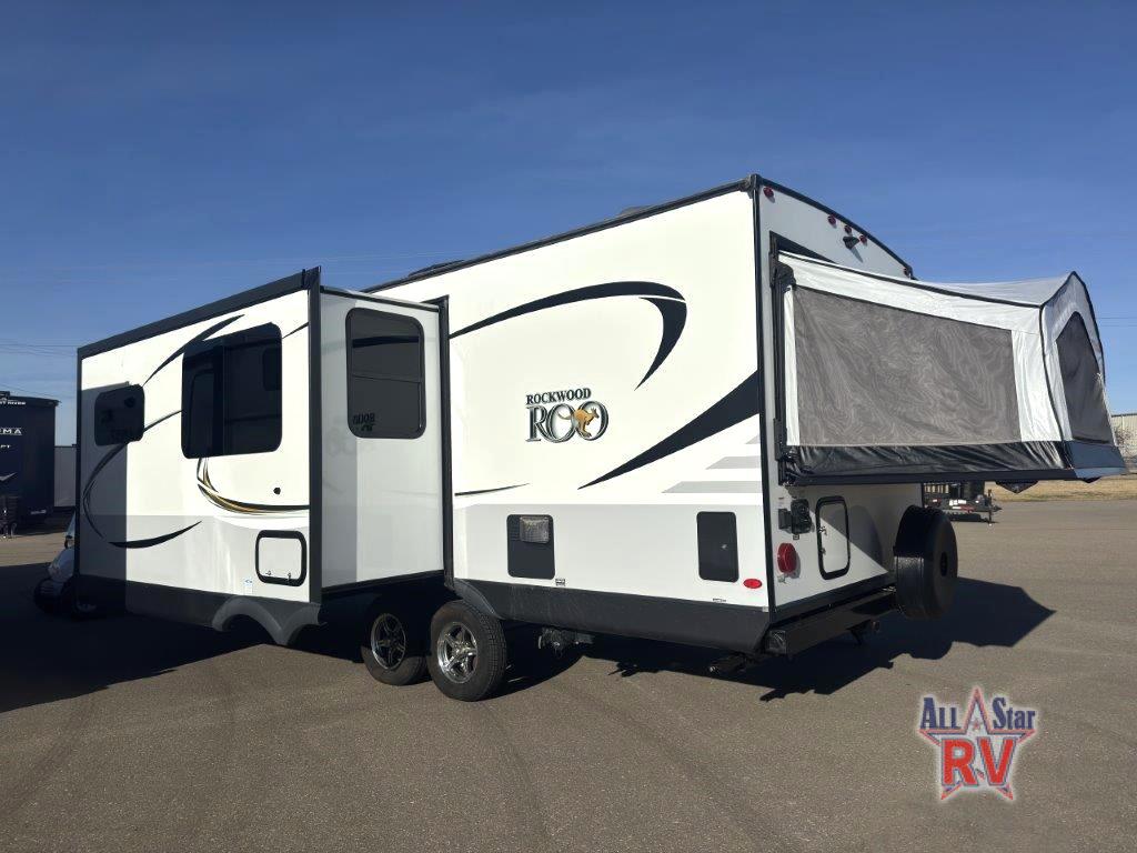 Luxury can be found in an expandable when you travel with this Rockwood Roo. Just imagine staying cozy by the fireplace while watching the 43" TV. Between the slide out and two tent end beds, you will have plenty of room to move about and sleeping space for six to seven campers. You can stay clean and refreshed thanks to the radius shower in the full bathroom which also includes linen storage. Don't forget that you can cook outside as well as inside. The power awning even offers some outdoor living space protected from the elements. And storage is no problem thanks to the shelves, coat closet, cabinets, and exterior compartments. Take your camping up a notch today!