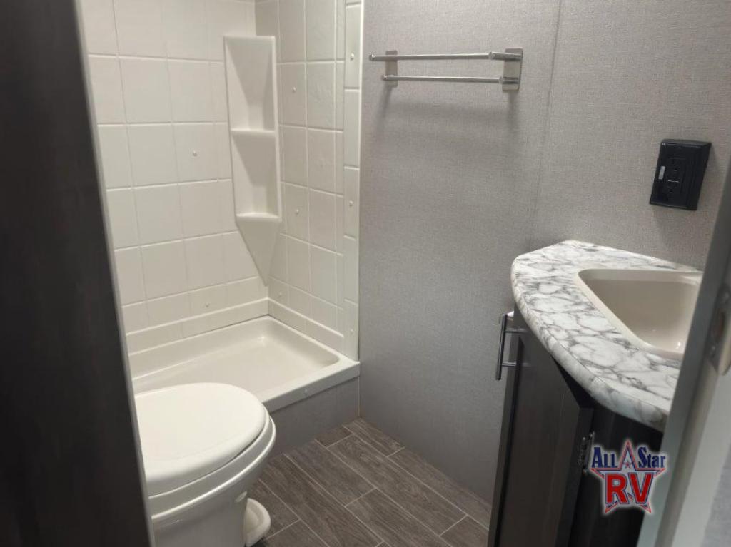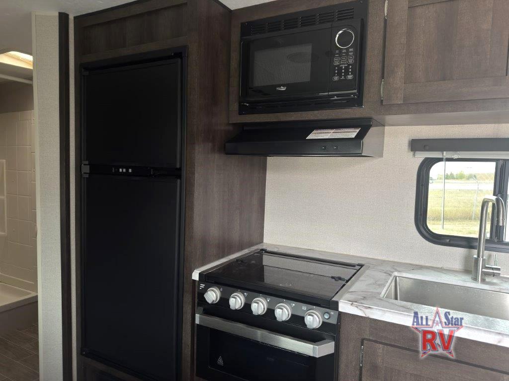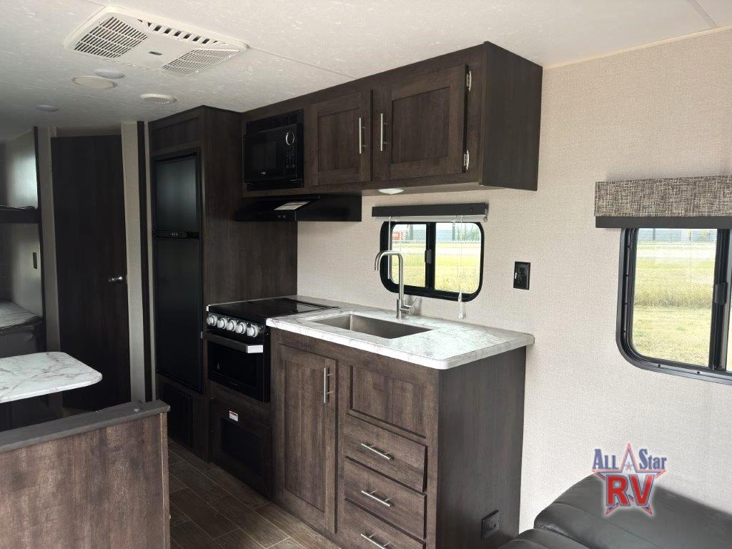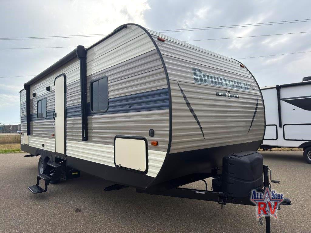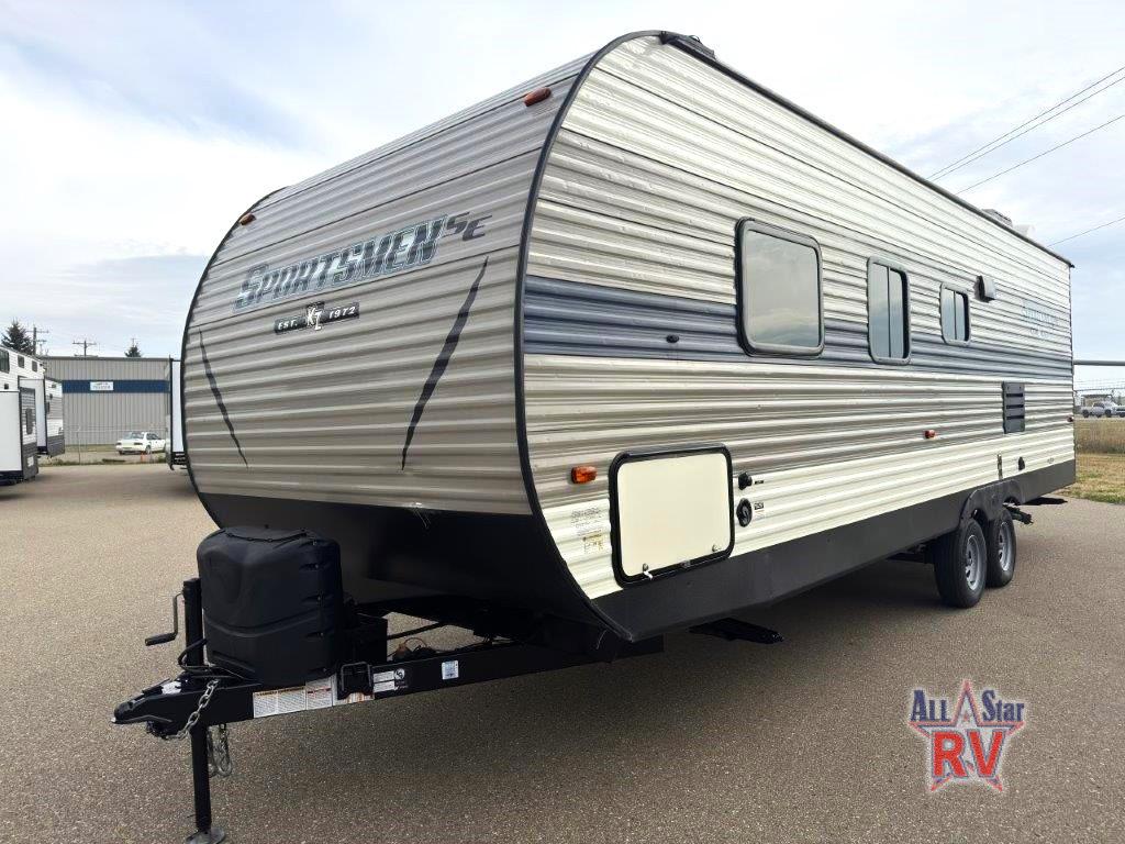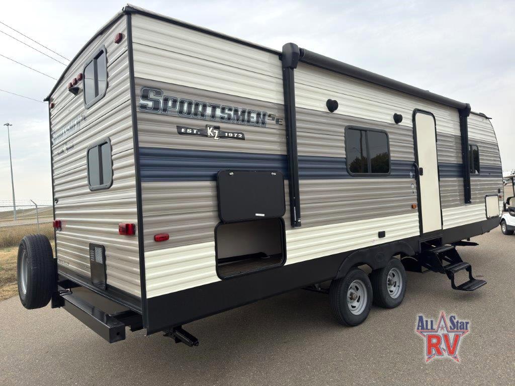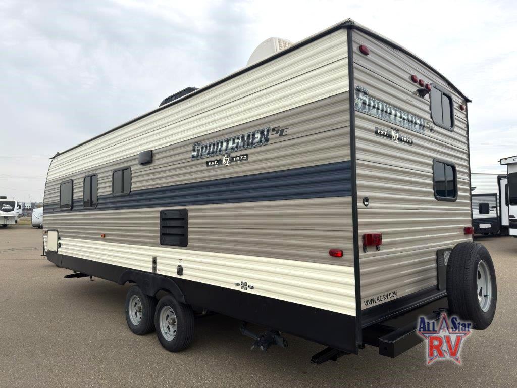 The Sportsmen SE travel trailer by KZ offers residential-grade linoleum for easy clean up, a stainless steel residential kitchen faucet and deep undermount stainless steel kitchen sink, color accented shower walls as a nice touch, dark accent trim on corners/entry doors, and lots of storage for your clothing, dishes, and such. The exterior gives you a one-piece, seamless, walk-on Tufflex roofing material, fully walk-on roof decking, an aerodynamic front profile with smooth metal front, three-toned exterior metal, and has been prepped for solar power and a backup camera. Start saving money and enjoy camping, choose the trailer that fits your wants and needs!
