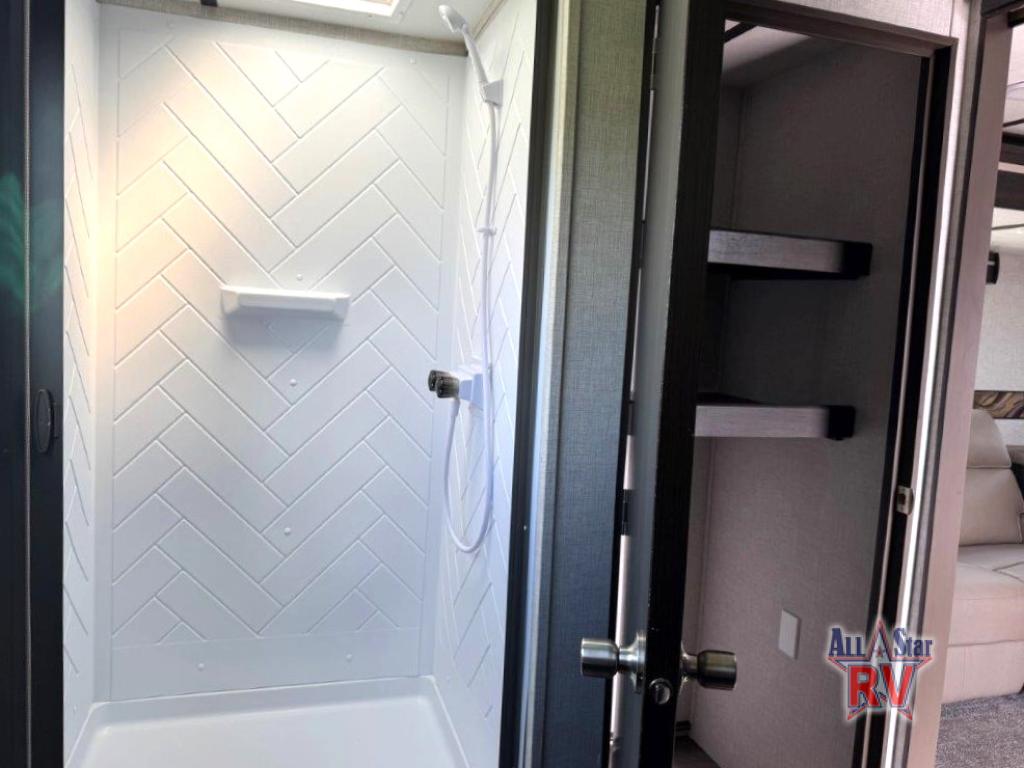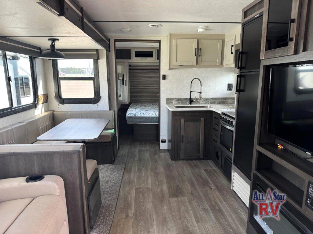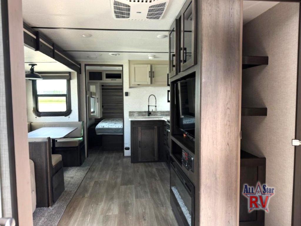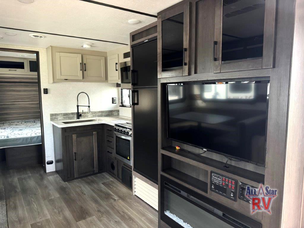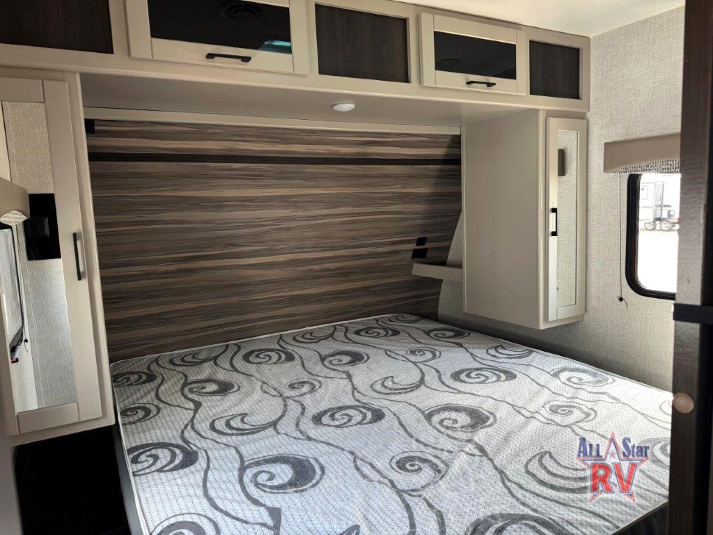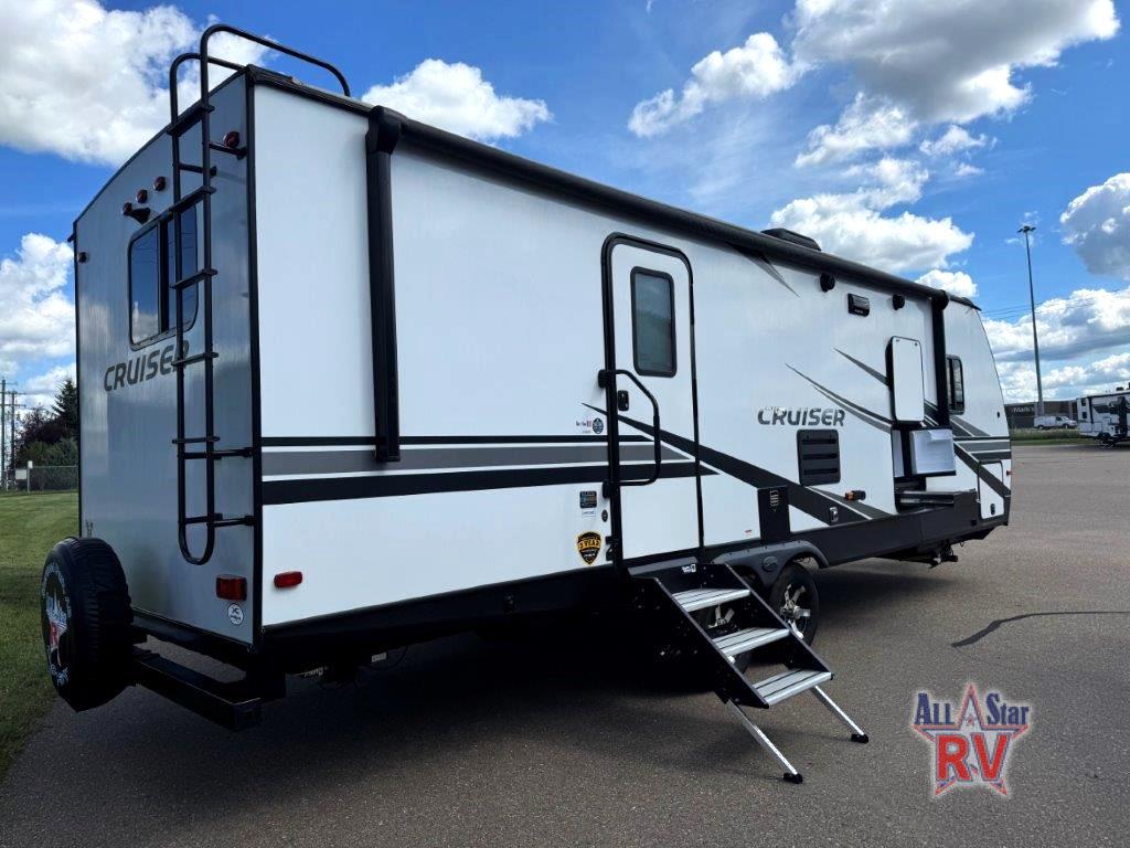 The CrossRoads RV Cruiser Aire fifth wheels and travel trailers have been made with your needs in mind. You will find many conveniences to make camping easier than ever, including Secure Stance entry steps, a Keyed-A-like lock system, a friction hinge entry door with a window, and more! The one piece seamless Super Flex roof includes a rear roof ladder so you can easily clean the top of your unit after a weekend in the woods. You can easily bring along all of your necessities with convenient storages spaces, like the full truck under-bed storage, the spacious bedroom closets, and the exterior heated pass-through storage. The high-rise faucet in the kitchen will make clean-up a breeze, and the hardwood cabinet doors will give that extra touch-of-home!
