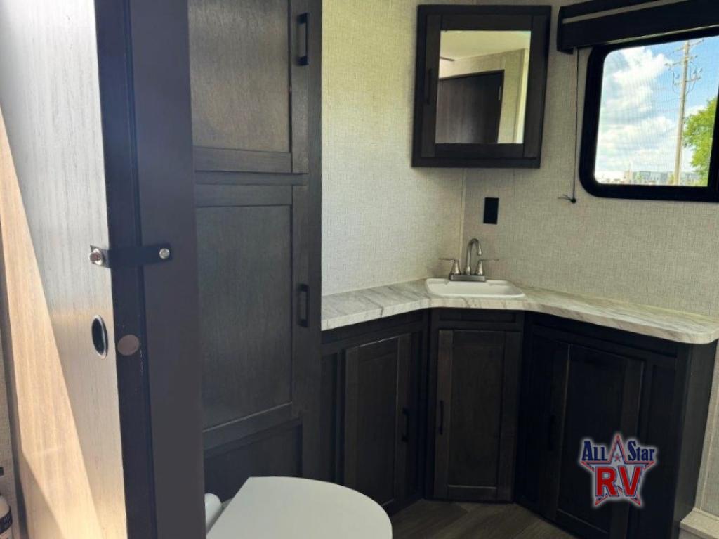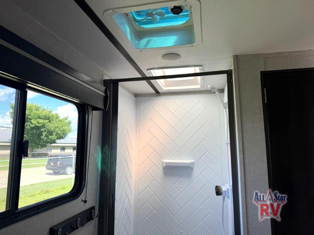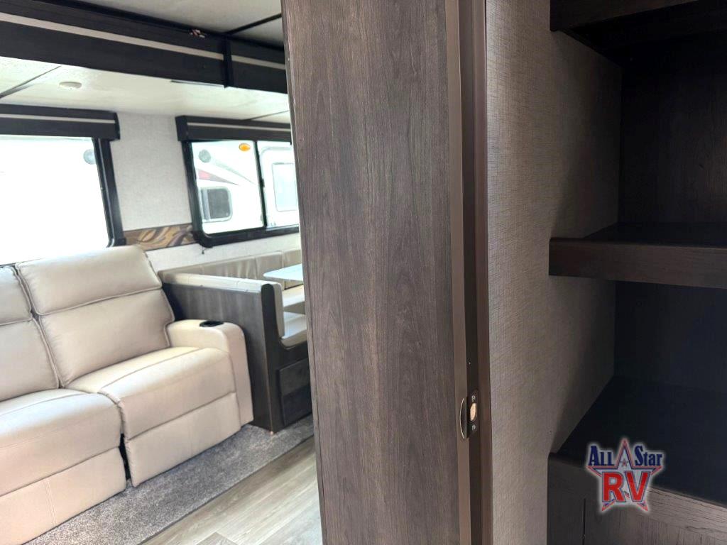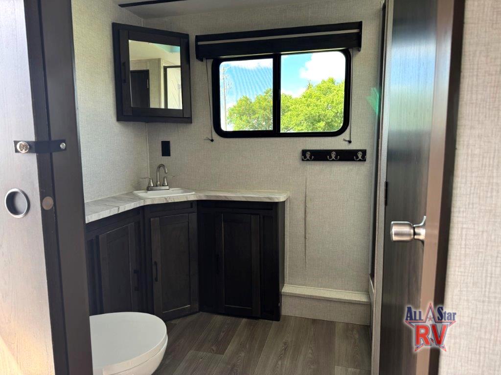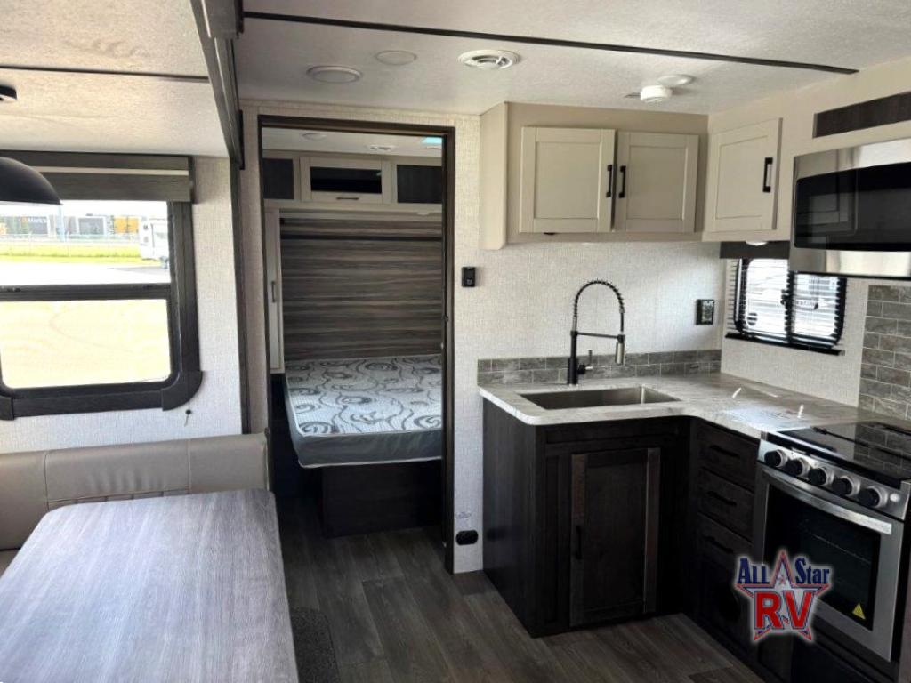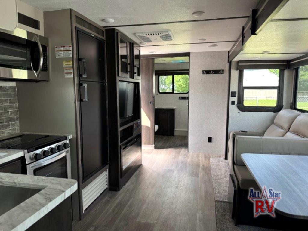 The CrossRoads RV Cruiser Aire fifth wheels and travel trailers have been made with your needs in mind. You will find many conveniences to make camping easier than ever, including Secure Stance entry steps, a Keyed-A-like lock system, a friction hinge entry door with a window, and more! The one piece seamless Super Flex roof includes a rear roof ladder so you can easily clean the top of your unit after a weekend in the woods. You can easily bring along all of your necessities with convenient storages spaces, like the full truck under-bed storage, the spacious bedroom closets, and the exterior heated pass-through storage. The high-rise faucet in the kitchen will make clean-up a breeze, and the hardwood cabinet doors will give that extra touch-of-home!