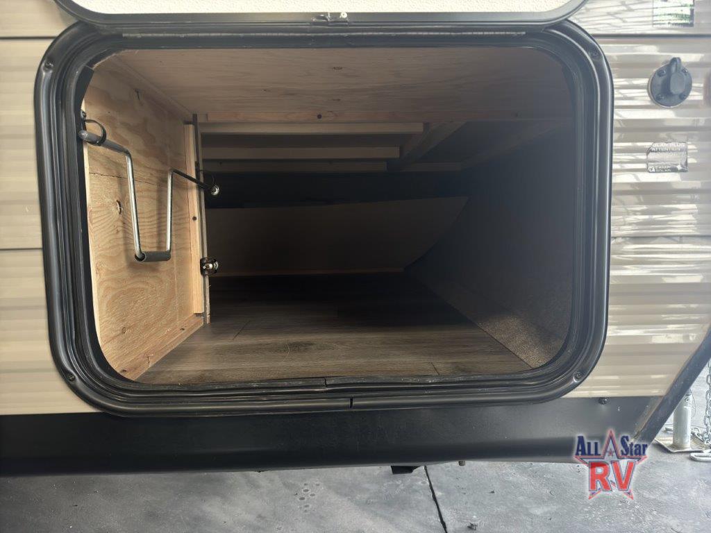This family friendly trailer gives you your own bed up front with a wardrobe and overhead storage, and your kids or guests will have bunk beds and a booth dinette that converts to extra sleeping space. The single slide out offers more floor space for everyone to move around and your pet to play around on when everyone isn't outside enjoying the weather or sitting under the 11' power awning with integrated speakers and LED lighting. The cook will surely appreciate having everything at their fingertips from the microwave to the refrigerator. They may even choose the optional 6 cu. ft. gas/electric fridge in place of the 12V refrigerator.