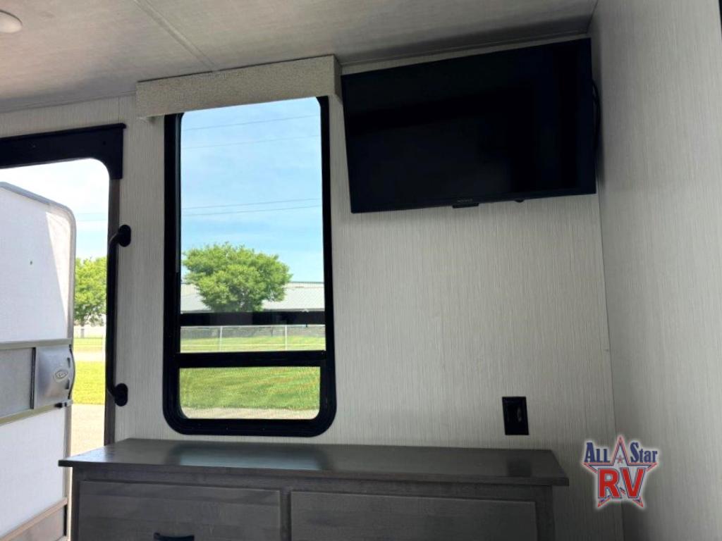 Each time you visit your favorite camping destination, you'll be so grateful to find the Forest River Cedar Creek Cottage destination trailer waiting for you! The exterior has ABS ribbed underbelly panels with no screws into the I-beam frame, a decorative front cap with molded picket fence, Dexter® heavy-duty axles with heavy-duty link plates and shackles, an electric awning with LED night lighting strip, and an enclosed and triple-layered insulated underbelly. The thermal-pane patio door will allow you to see the beautiful outside scenery from the comfort of indoors, and the 12V home theater system and control app for your smart phone will entertain you throughout all adventures.
