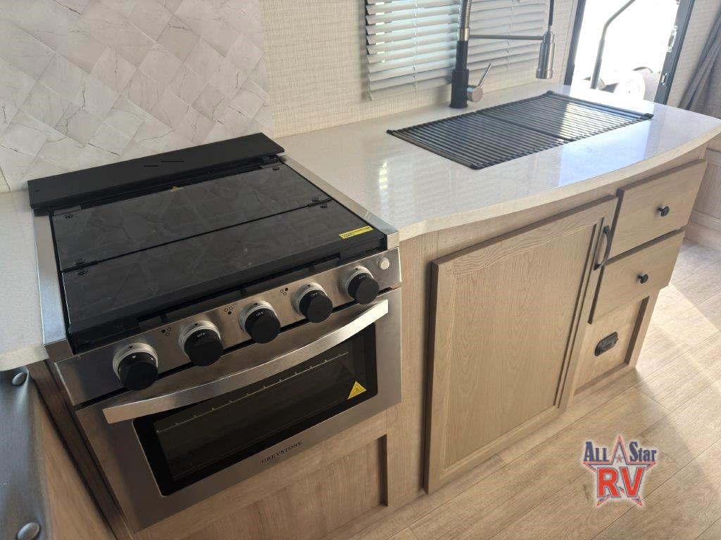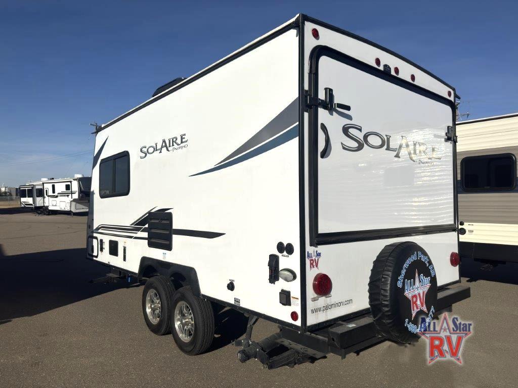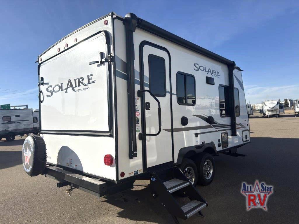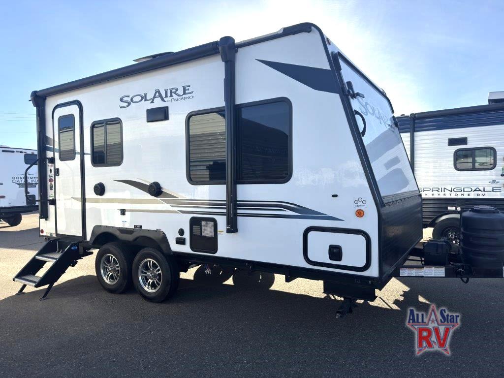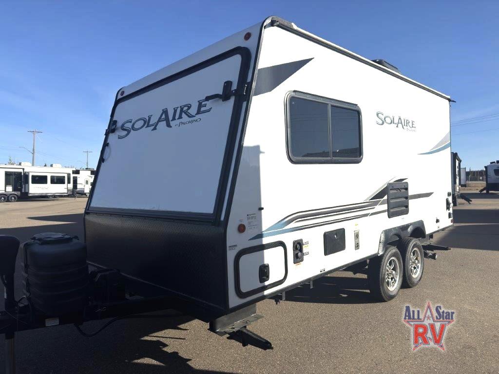 Each SolAire travel trailer or hybrid expandable features a white hi-gloss exterior, and Dexter Tor-Flex torsion axles for smooth towing. You will love having a power tongue jack for easy set up, plus slam latch baggage doors with magnets to make unloading easier than ever. There is also a tire pressure monitoring system, a power awning with LED lights, and aluminum wheels included on the exterior. Head inside to find solid surface countertops, roller shades, a Furrion HDMI DVD/Bluetooth/HDMI stereo, and USB ports to keep your electronics charged.